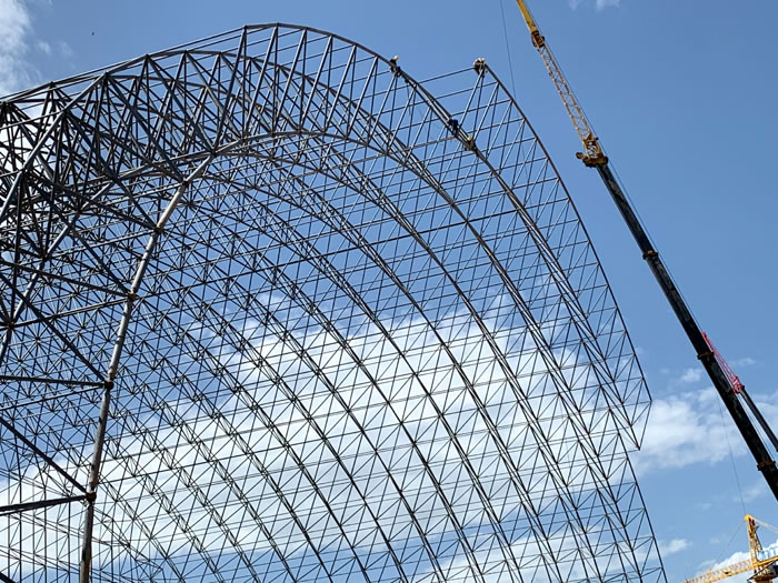 (2)网架加工前应对现场尺寸进行复测,确认无误后方可进行加工、安装;网架制作、运输、安装应遵守《空间网格结构技术规程》JGJ7-2010、《钢网架随州螺栓球节点》JG/T 10-2009、《钢网架随州螺栓球节点用高强度螺栓》 GB/T 16939-2016、《钢结构随州工程随州施工规范》 GB50755-2012、《钢结构随州工程施工质量验收标准》 GB50205-2020。